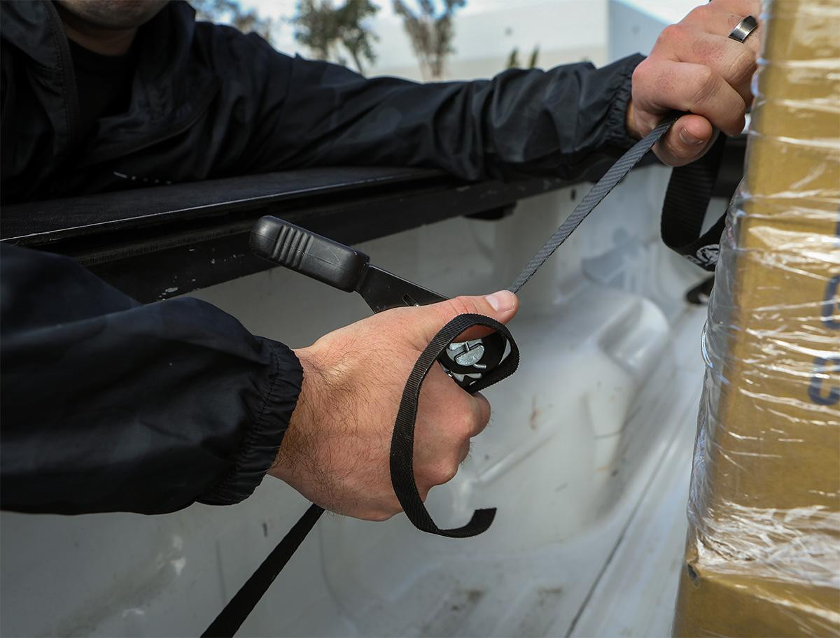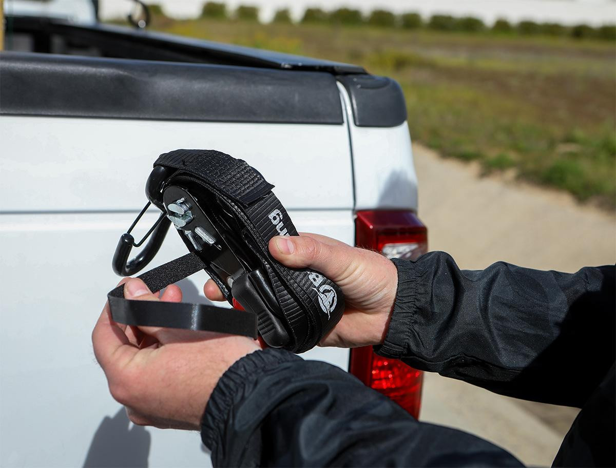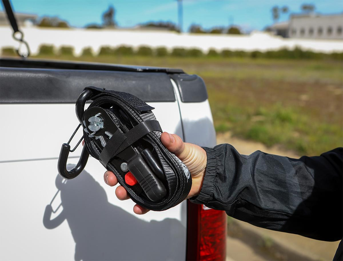 - No more reaching down into the truck bed to get the ratchet tight