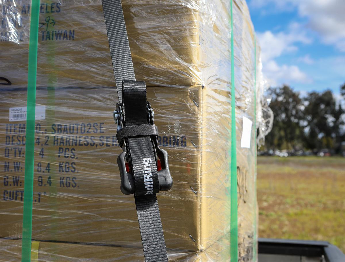 BullRing's 1.25 Inch x 12 Foot Sliding Ratchet Tie Downs make securing cargo on your truck or trailer quick and easy. A common issue with ratchet straps can be hard to access and tighten. Think of the last time you tried to ratchet something down in a truck bed when it was completely full. The ratchet handle is still stuck down low in the bed where you can barely reach it.