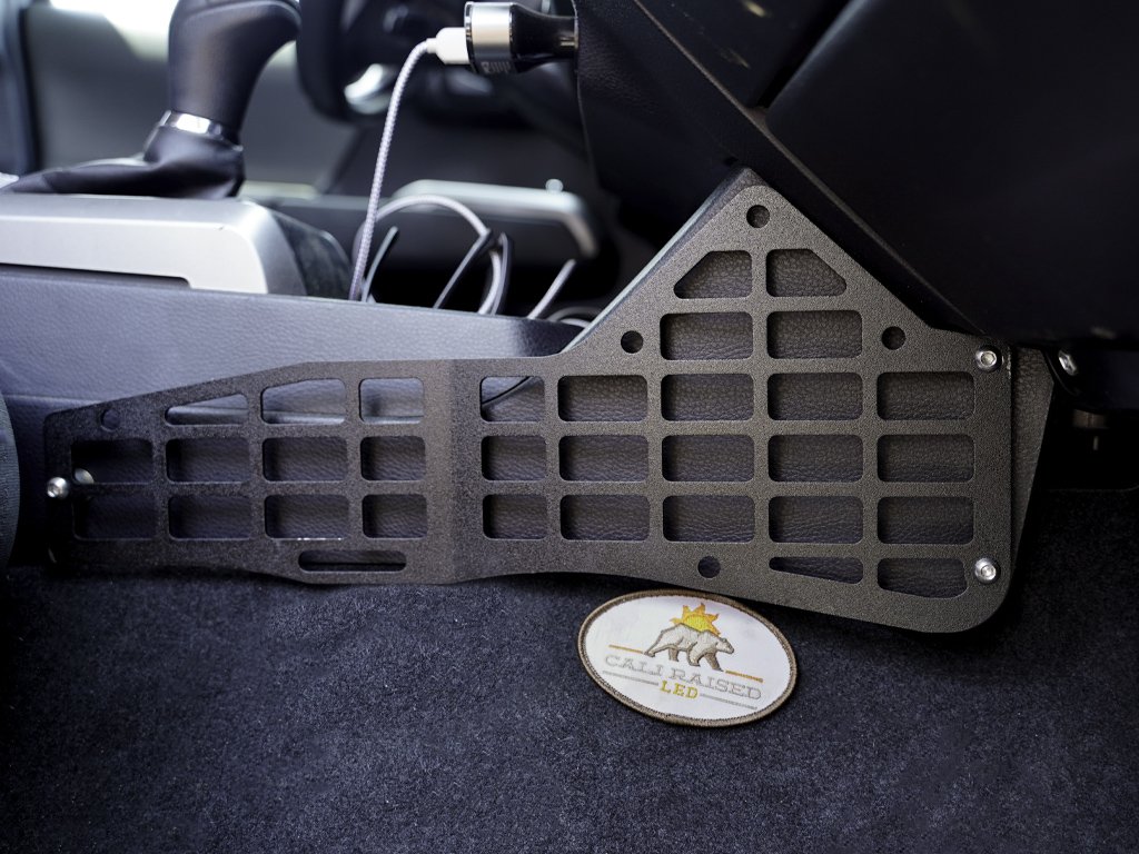 Mount any of the smaller and more important items you want at hands reach. Wherever you may wander, be prepared, with our center console MOLLE system from Cali Raised LED.