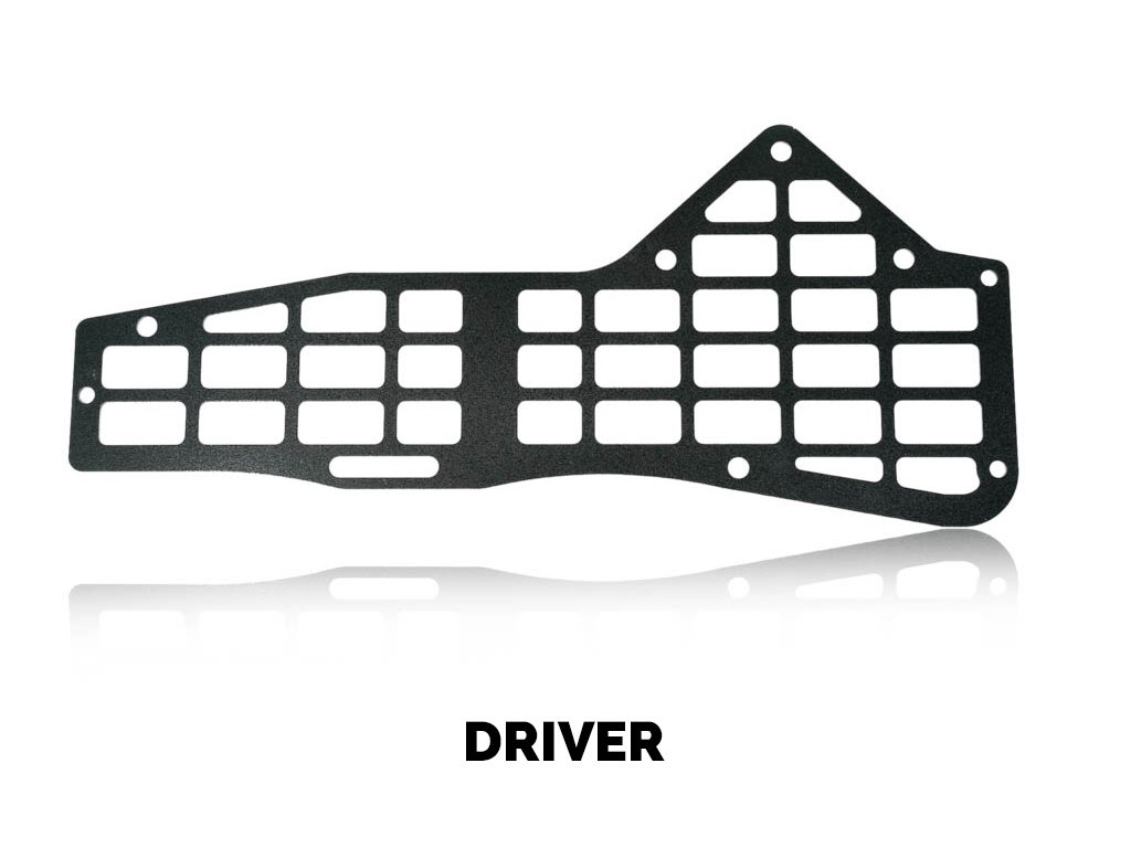 Our center console MOLLE systems are custom designed and laser-cut, providing a bent to perfection, seamless fit that's sure to impress. We also powder-coat it in a durable black semi-gloss mini texture to protect against corrosion, as well as anything else Mother Nature might throw at you. it's not only strong, but it's also lightweight, which makes it incredibly versatile while out off the beaten path.