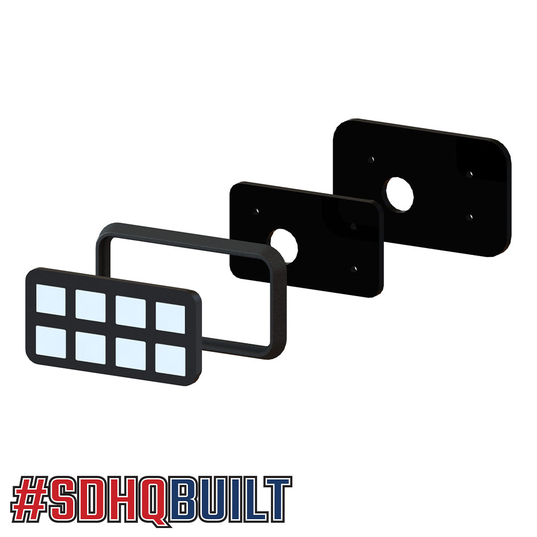 Our 2009-2014 SDHQ Built Ford F150 Switch Pros Keypad 9100 Mount is made in the USA and designed to fit the cubby next to the infotainment center of your vehicle. It will not fit with the factory brake controller and does not come with switch-pros SP-9100. Upgrade to this keypad mount to enjoy a convenient and secure setup.
