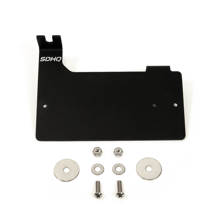 The SDHQ Built Switch-Pros Power Module Mount for the 2010-2018 Ram 2500 and 3500 offers a well-thought-out solution for owners looking to integrate the Switch-Pros power management system into their trucks. This mount simplifies the installation process of the SP-9100 or RCR-FORCE-12 by providing a designated spot that is both secure and conveniently located within the engine bay for easy wiring access, particularly near the Battery for direct power connections.