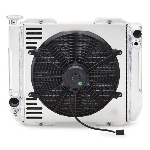 Just thread the thermostat probe into the tank, wire up the adjustable controller, and you ll be driving down the street nice and cool in no time at all. This system includes a single-pass, all-aluminum radiator; low profile shroud; 12-volt electric fan; and an adjustable thermostat controller.