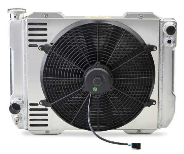 Just thread the thermostat probe into the tank, wire up the adjustable controller, and you ll be driving down the street nice and cool in no time at all. This system includes a single-pass, all-aluminum radiator; low profile shroud; 12-volt electric fan; and an adjustable thermostat controller.
