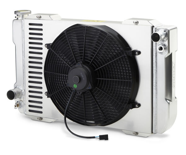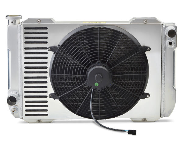 Just thread the thermostat probe into the tank, wire up the adjustable controller, and you ll be driving down the street nice and cool in no time at all. This system includes a single-pass, all-aluminum radiator; low profile shroud; 12-volt electric fan; and an adjustable thermostat controller.