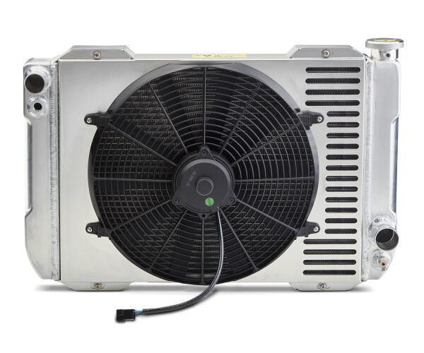 Just thread the thermostat probe into the tank, wire up the adjustable controller, and you ll be driving down the street nice and cool in no time at all. This system includes a single-pass, all-aluminum radiator; low profile shroud; 12-volt electric fan; and an adjustable thermostat controller.