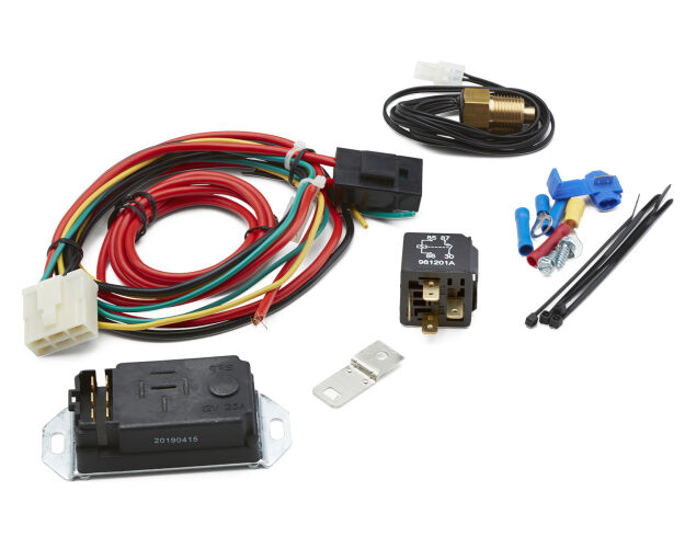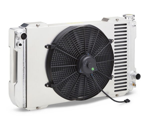 Just thread the thermostat probe into the tank, wire up the adjustable controller, and you ll be driving down the street nice and cool in no time at all. This system includes a single-pass, all-aluminum radiator; low profile shroud; 12-volt electric fan; and an adjustable thermostat controller.