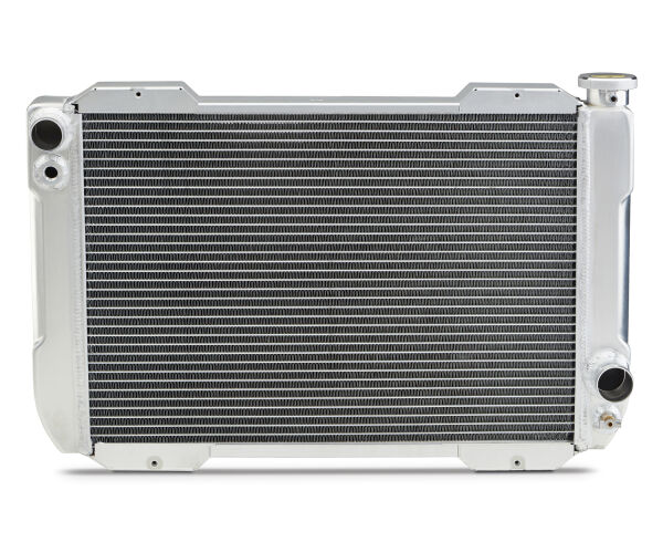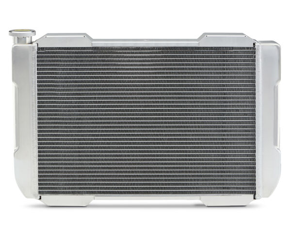 This is a really nice cooling system that's ready for the show, streets, or strip! This Stage 1 Radiator has dual one-inch tubes, single pass, with optimized louver design to maximize cooling, and deep draw headers for an extra solid tube/header seal. Billet aluminum filler neck with overflow tube, and a billet aluminum 16 psi cap are included. No epoxy or anything else like that just tight tolerances all around. Building your custom cooling system is easy!