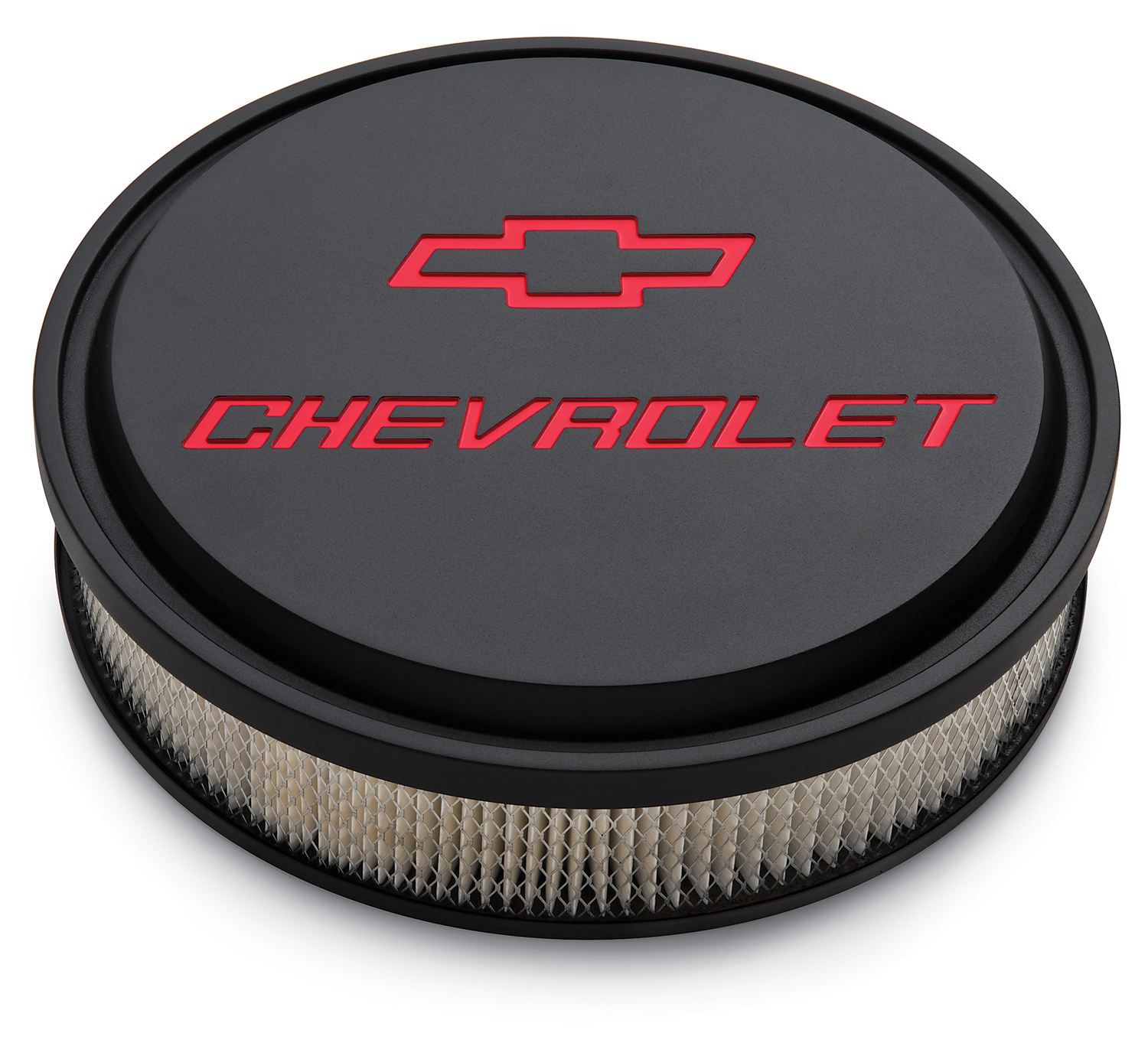 New Slant-Edge Air Cleaners are the perfect way to complete your dress-up look in premium Slant-Edge style. Initially six of the most popular styles that include raised and recessed emblems will be released! Whether you have Slant-Edge valve covers, or a set from a different series, these air cleaners will bring your engine look together in head turning fashion. They are supplied with genuine 3 inch GM air filter elements; GM P/N 6421746 or AC Delco P/N A212CW, for maximum airflow. Each kit is supplied with necessary mounting hardware. Technical Note: After installing a new air cleaner, always lower the hood slowly to confirm sufficient clearance visually. Minimum clearance of 3.75 inches is required from the top of the carburetor gasket area to the underside of the hood. For buyers wishing a taller, 4.031 inch filter, purchase GM P/N 8997189 or AC P/N A697C. The air cleaner bases are recessed for a low profile appearance, maximum performance and hood clearance. Patent Pending.