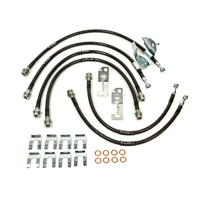 These new stainless kevlar braided lines are equipped with factory fittings so it makes install a breeze, these new lines come with a stealth smoked protective sheath for even more protection.