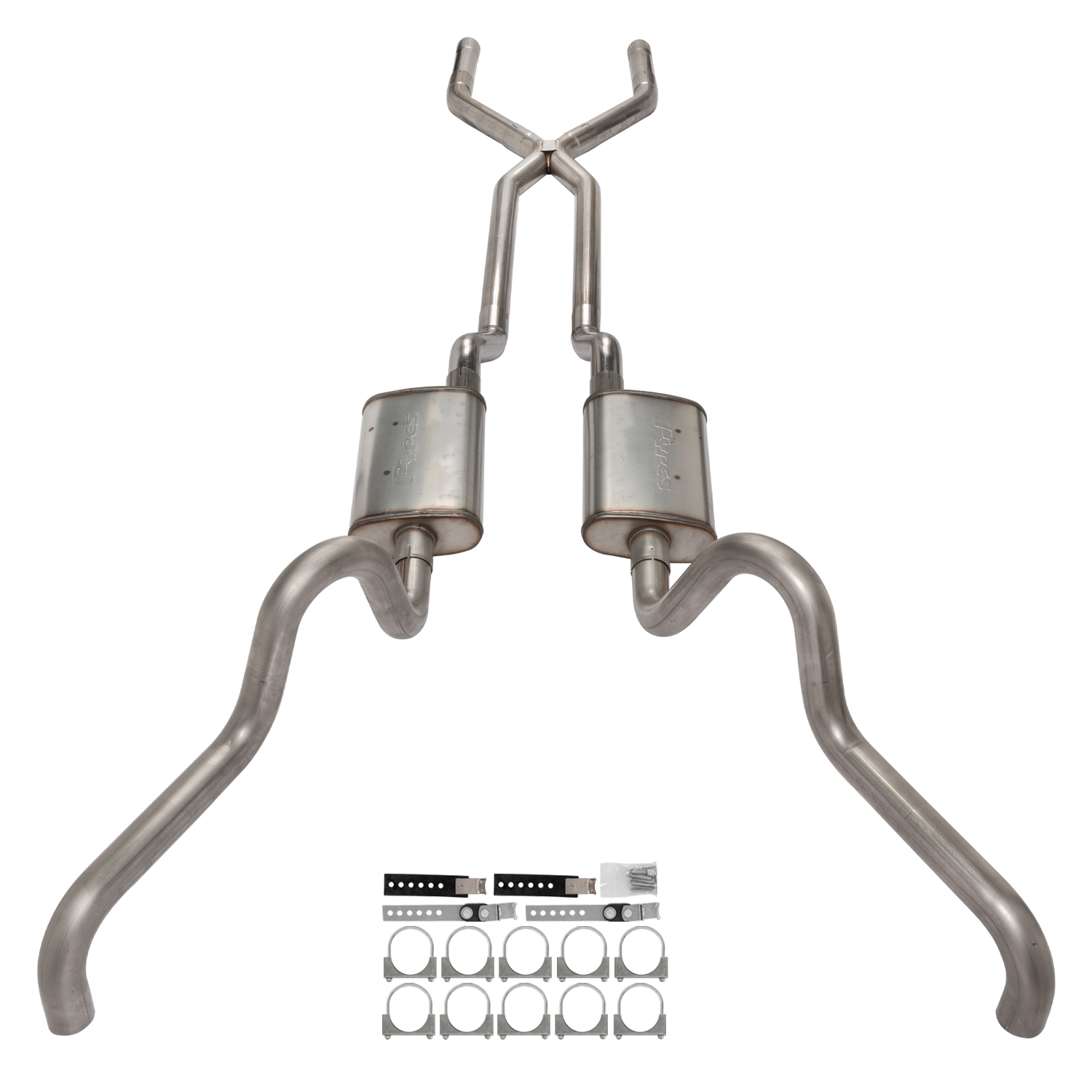 1966-71 Ford Fairlane 2.5 Inch X-Pipe Crossmember Back Quarter Panel Exit Exhaust Violator Mufflers Pypes Performance Exhaust