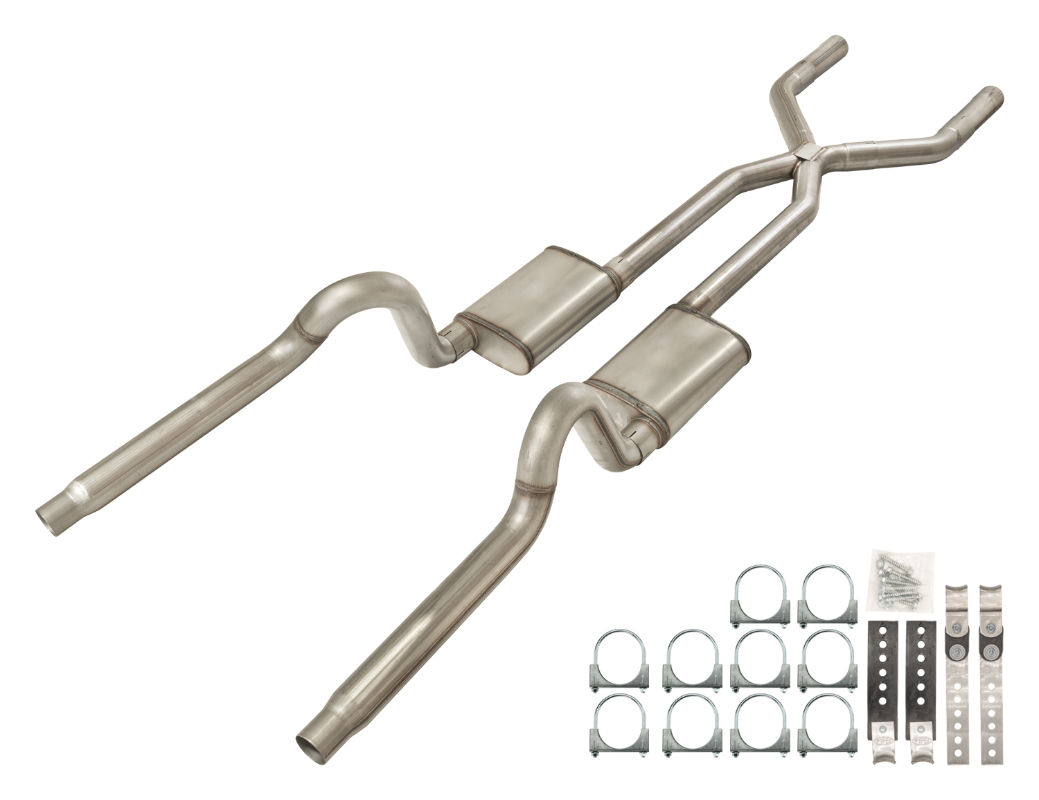 Unleash the Classic Muscle Car Roar with the Pypes 3 inch X-Pipe Crossmember Back Exhaust Kit. Experience a true transformation in your ride's performance and sound.