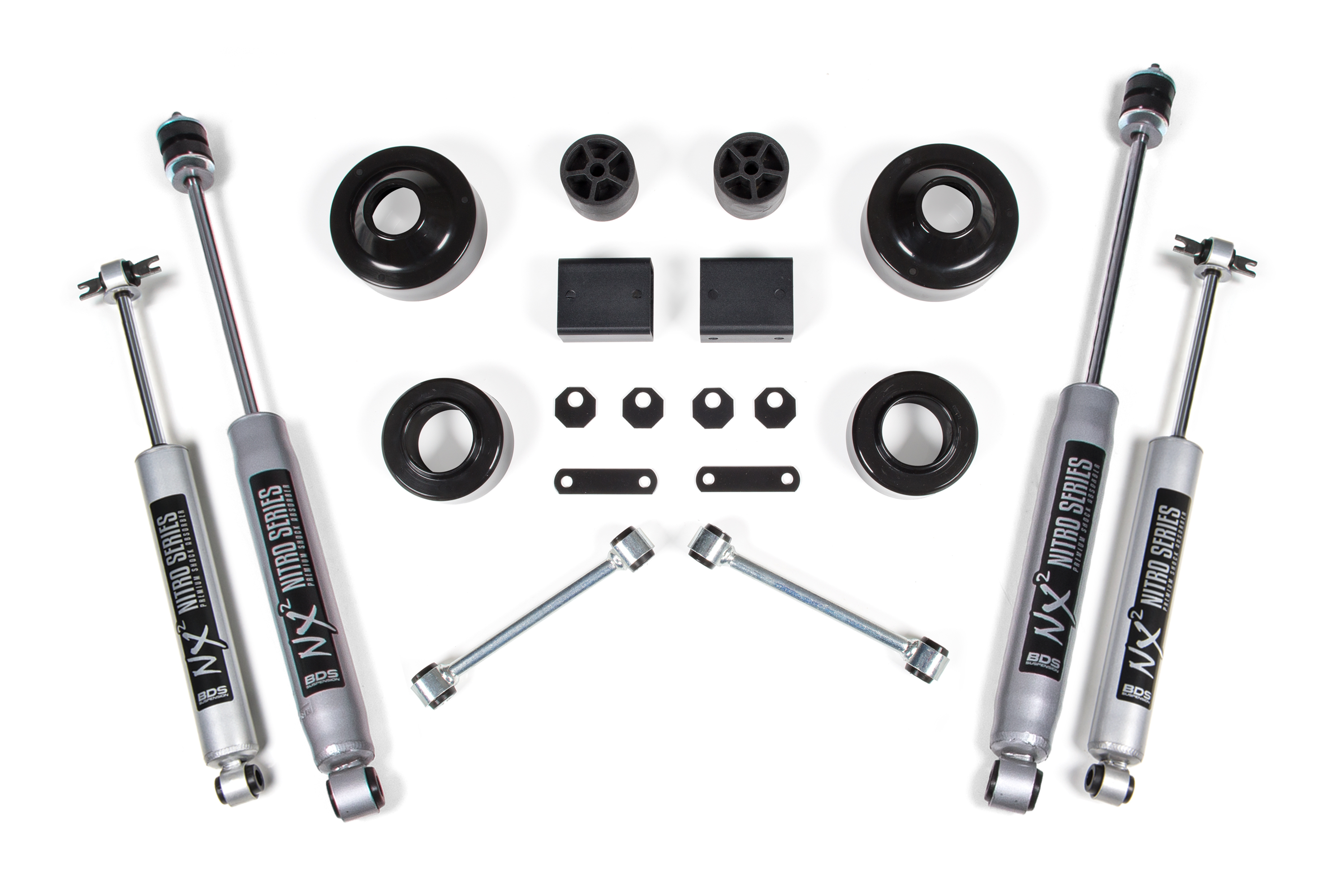 Boost the height of your 2007-2011 Jeep Wrangler JK 2 Door by installing this 2-inch coil spacer lift kit from BDS. Designed to improve stance this kit includes everything necessary to set your truck up right with clearance for up to 33 inch Tires at an affordable price.