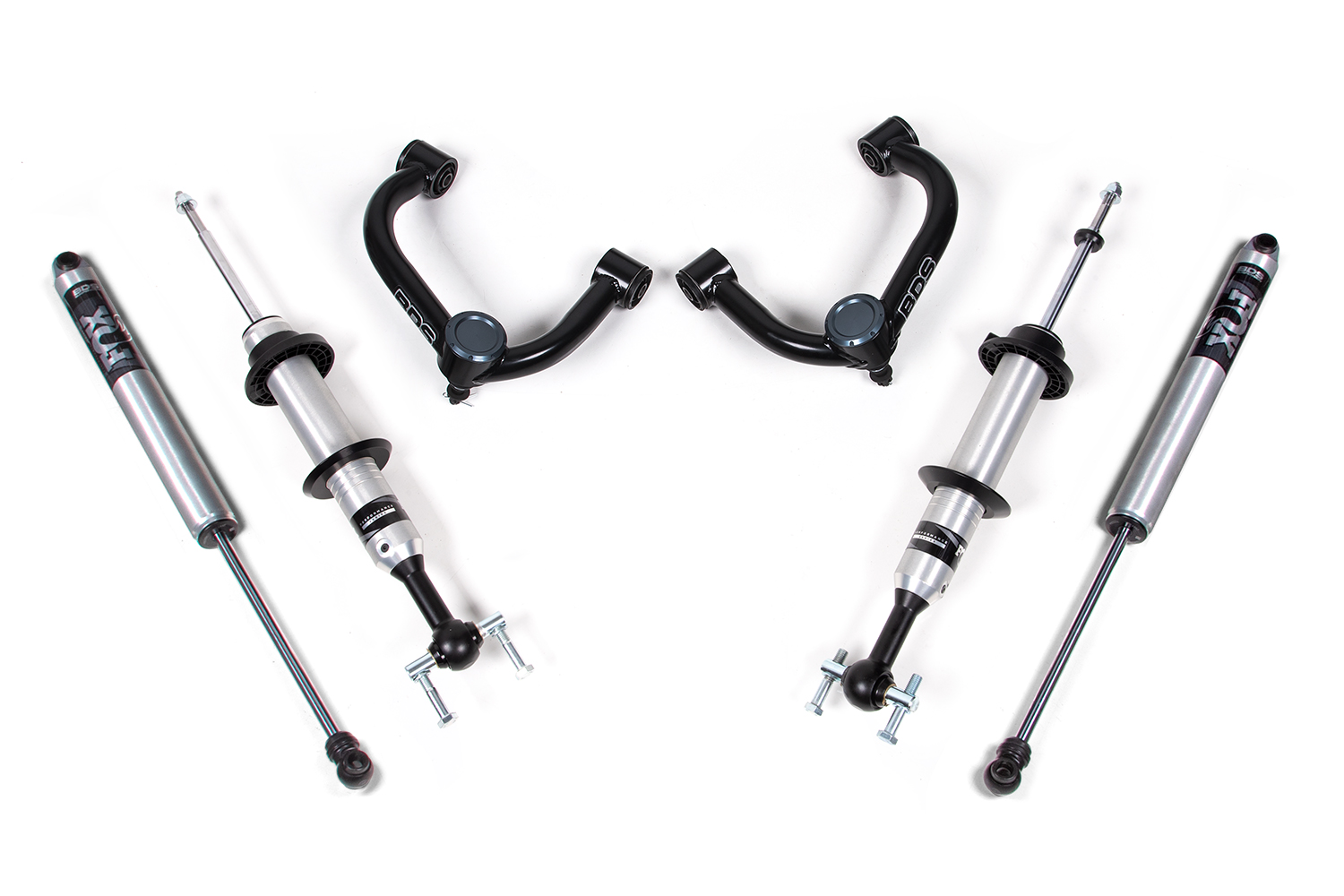 Up front the lift kit includes FOX 2.0 Performance Series strut shocks and heavy duty tubular upper control arms for increased strength. In the rear this kit utilizes a matching set of FOX 2.0 Performance shocks for the smoothest ride.