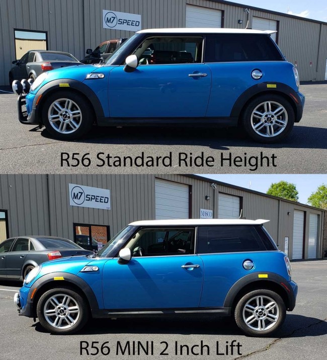 Looking to add additional road clearance to your R55 through R59 MINI? Weather you want to do some spirited adventure motoring on unpaved roads, run pole line roads in the western desert, explore deep into the northern woods or live in a high snowfall area you can now get it done in your MINI.