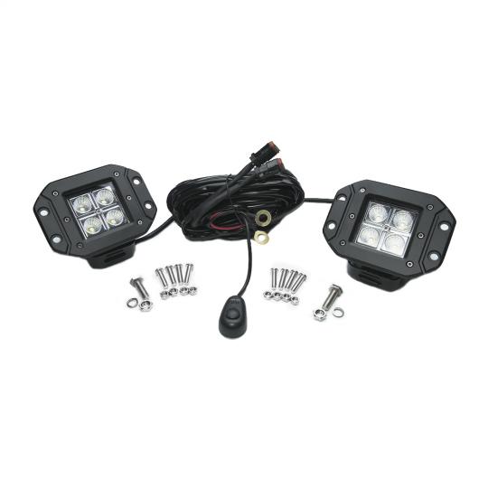 - Kit Components Two 2.0 inch LED flush mount cube lights, Dual lead wiring harness with switch/relay, mounting brackets and hardware