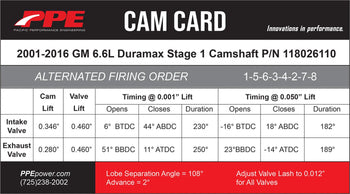 The PPE Stage 1 Performance Camshaft - ALT-Firing changes the cylinder firing sequence to 1-5-6-3-4-2-7-8. This alternation reduces the stress exerted on the crankshaft and prevents crankshaft failures which are commonly seen in high-performance applications.