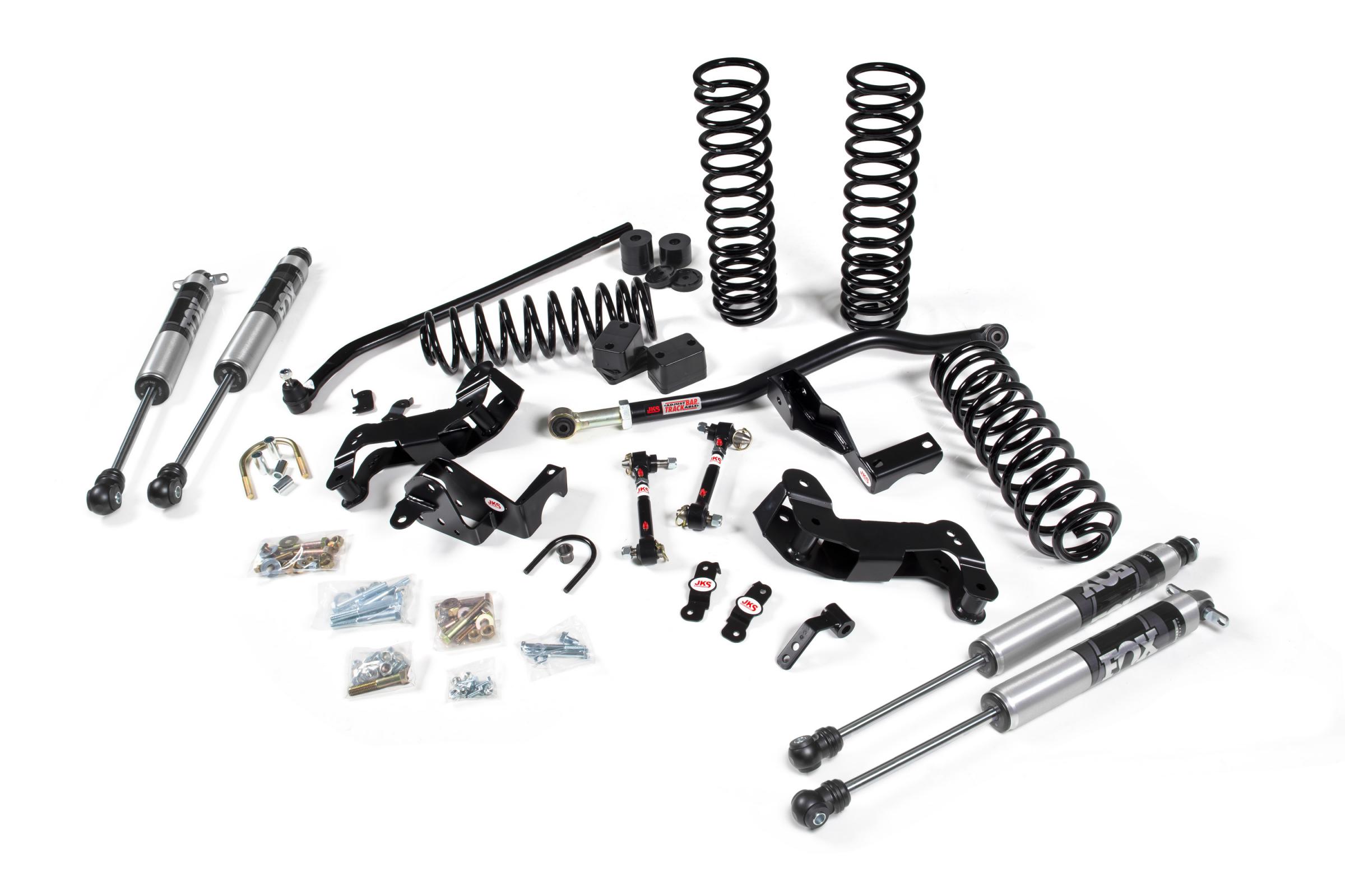 Upgrade your Jeep Wrangler JK 4 Door with a J-Konnect 3.5 inch suspension system to fit larger tires and increase off road capabilities. The J-Konnect kit includes dual rate coil springs, tuned gas shocks, adjustable front track bar, J-Link lower control arms, and sway bar Quicker Disconnects.