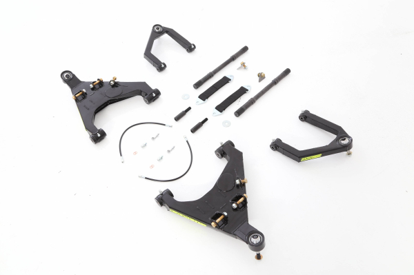 This kit is made to fit perfectly on your Toyota by replacing the stock rubber bushings and ball joints with Hi Density Bushings and Uniballs, the strength and handling qualities are substantially increased.