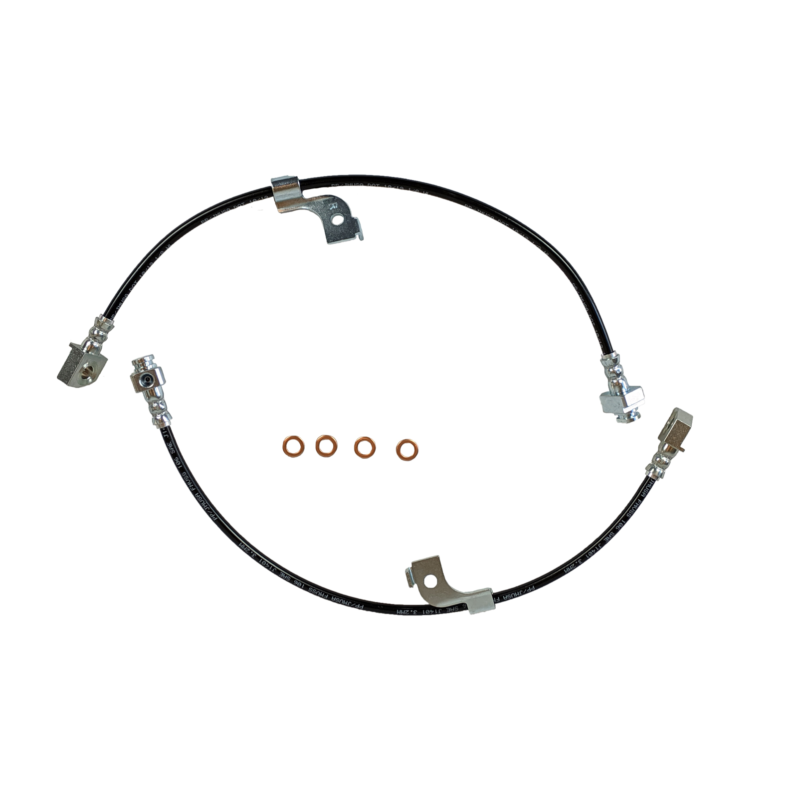 J and M Products direct fit D.O.T. certified PTFE lined brake hoses. These brake hose assemblies use true OEM style direct replacement non-universal fittings to achieve proper factory hose routing and fitment. Expansion of stock rubber hoses causes a spongy brake pedal feel and loss of initial braking force.