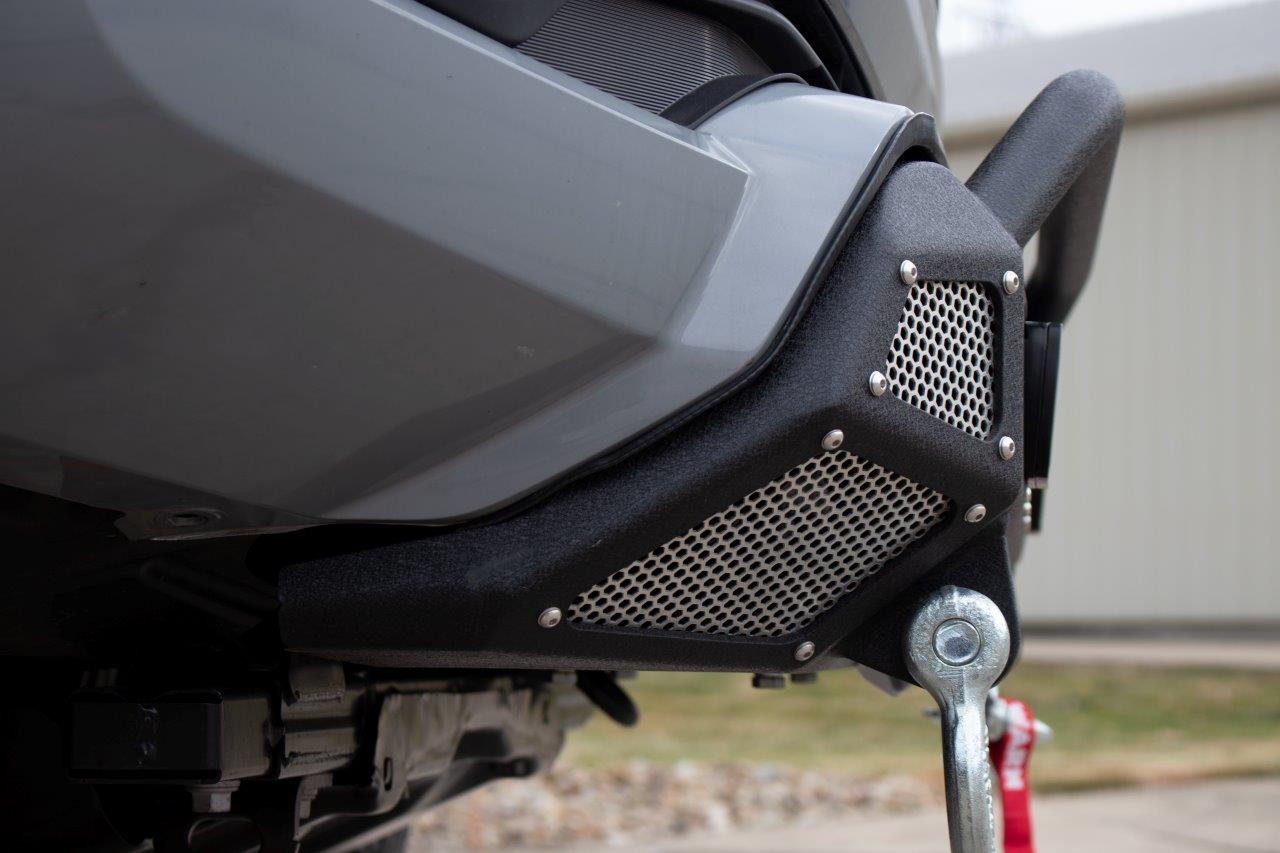 It completely houses your winch, shielding it from mother nature, and it even adds a much needed initial skid plate and paintable mesh accents!