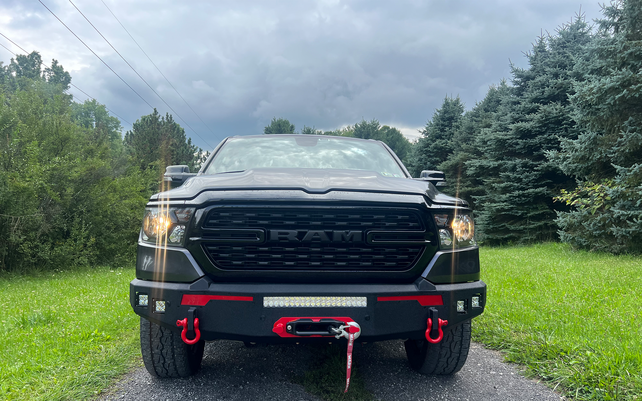 Built from robust 0.156 Inch thick steel, it stands as a testament to durability, further enhanced by its CNC bent and welded construction. Stretching to a grand length of 81 inches, this bumper redefines the front profile of your Ram 1500.