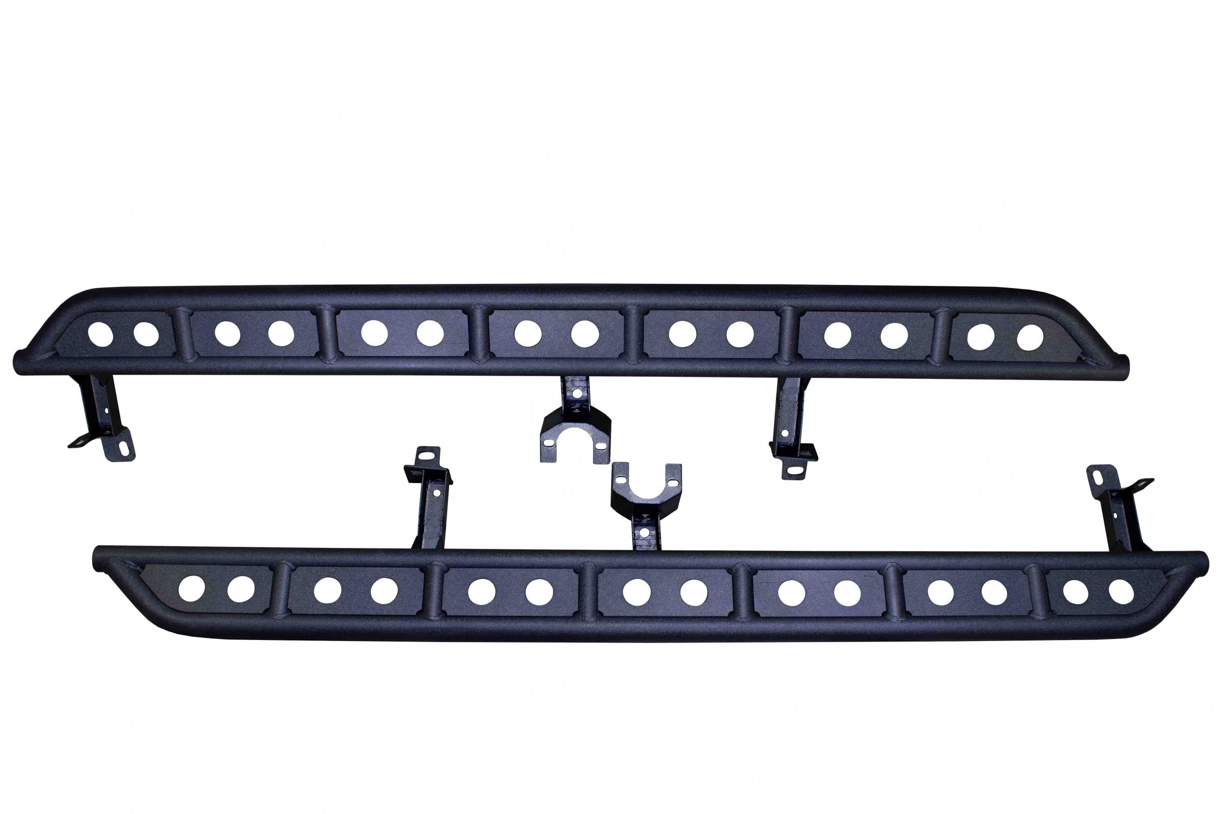 These mount to the underside of the Jeep using 3 mounting locations and provide you with protection on the trail and a step to help the family get into the vehicle.