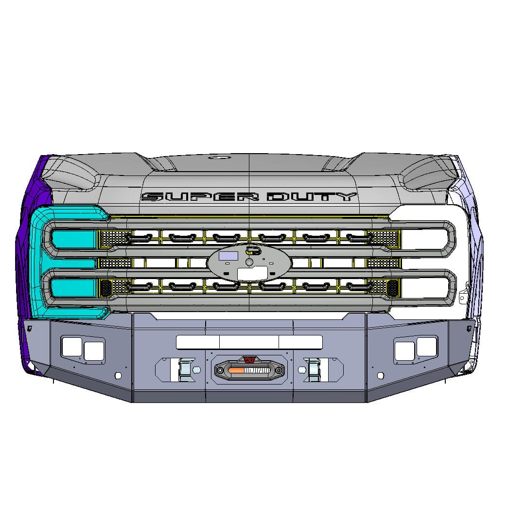 - 23-Present Ford Superduty F250/F350 Attitude Series Front Winch Bumper Yes Parking Sensors