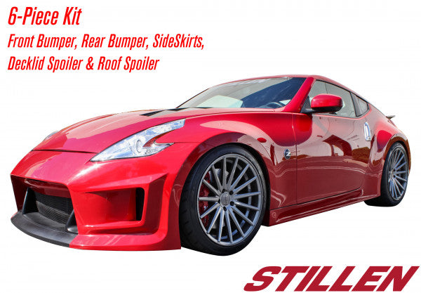 STILLEN 2009-2019 Nissan 370Z Body Kit - 6 Piece kit w/ Roof Spoiler and Hatch Wing Z34 Upgrade your Nissan 370Z with a new STILLEN body kit! This aftermarket body kit features an unforgettable look with components that are modeled after Steve Millen's award winning IMSA 300ZX and the STILLEN Targa Newfoundland GT-R. Not only does this Nissan 370Z body kit look great, but it is also practical with a multi-piece design that helps direct cool air to your engine for better cooling and improved performance. You can't go wrong with the STILLEN Nissan 370Z body kit!