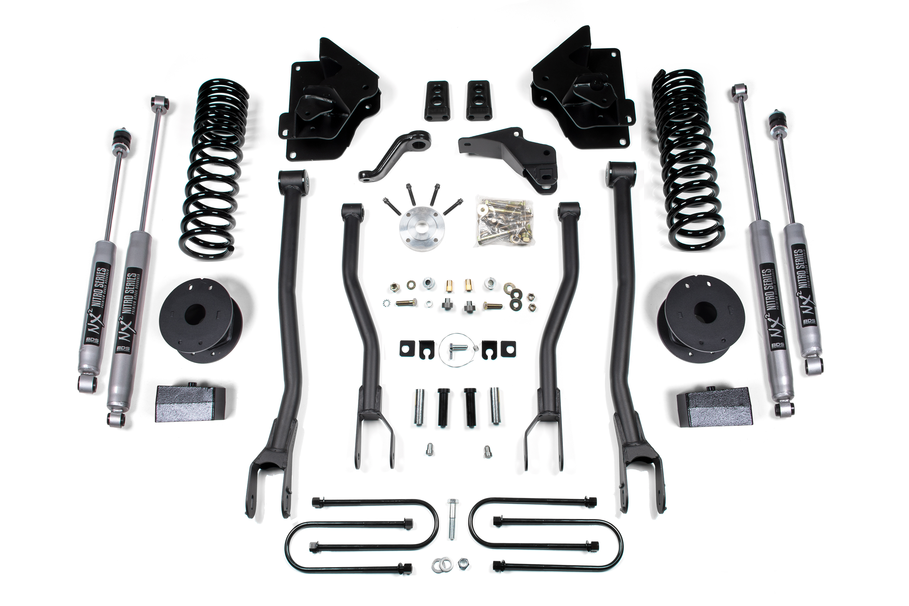 Built to outperform, BDS Suspension engineered a 4-inch lift kit with 4-Link conversion for your 2013-2018 RAM 3500 diesel powered truck that will surely impress. Works on trucks with factory rear air ride option. Designed to improve stance, performance, and capability, this kit includes everything necessary to set your truck up right with clearance for up to 35 inch Tires.