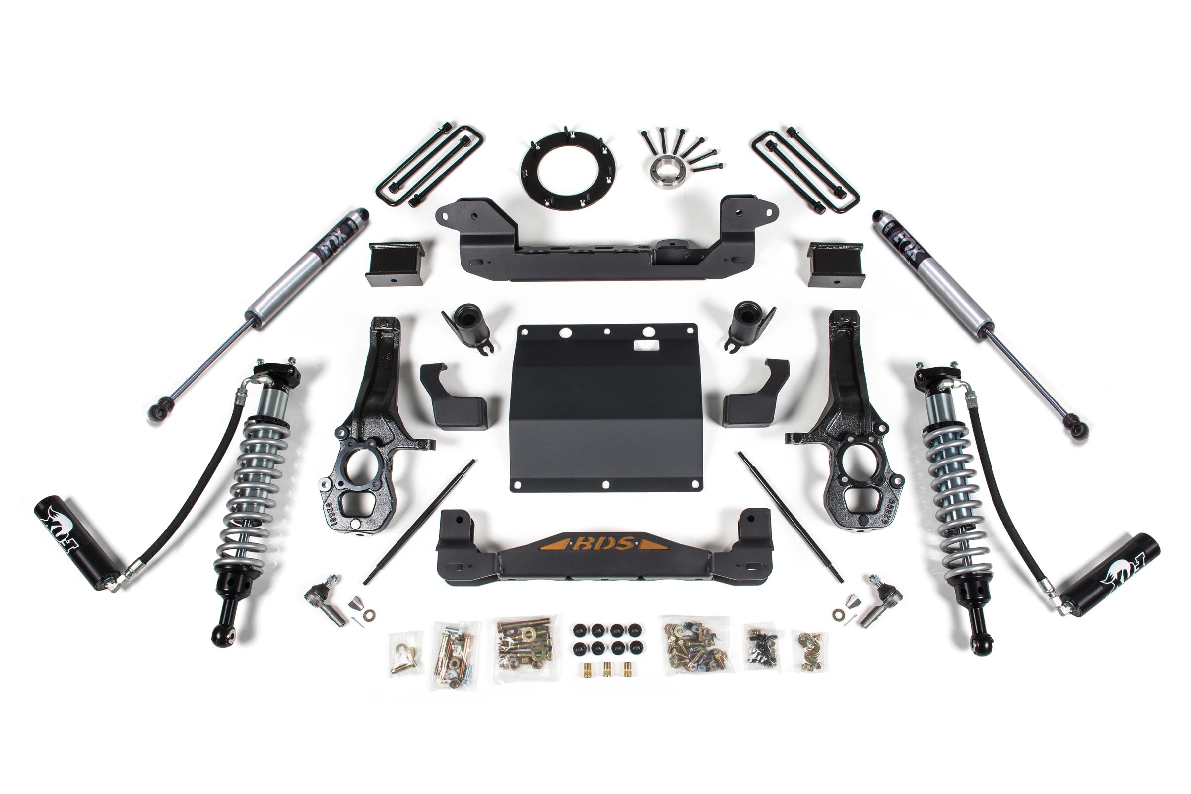 This kit takes advantage of BDS's tried and true high-clearance design for improved ground clearance, strength, and offroad protection while correcting suspension and steering geometry for great on-road handling characteristics. Up front, the kit utilizes FOX 2.5 coil-over shocks, high-arched 1/4-inch thick steel crossmembers along with a multipiece differential relocation brackets and heavy duty skid plates built for offroad protection.