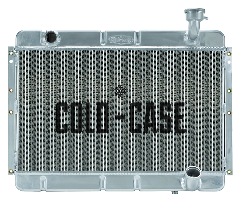 1956-1960 Chevrolet Corvette Aluminum Performance Radiator. AT/MT Cars. These COLD-CASE radiators are Tig welded 100 percent aluminum and absolutely beautiful. Don't buy a 3 or 4 row aluminum radiator! It doesn't cool as good as these oversize 2 row models. These radiators are original appearing and have the correct stamping. Once painted, you'd be hard pressed to find a difference over an original versus a COLD-CASE.