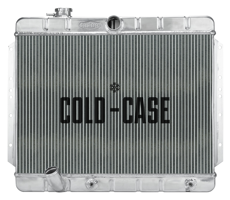 1959-1960 Cadilac Aluminum Performance Radiator. Use for all 390cid applications without Air. Brackets on grille side. These COLD-CASE radiators are Tig welded 100 percent aluminum and absolutely beautiful. Don't buy a 3 or 4 row aluminum radiator! It doesn't cool as good as these oversize 2 row models.