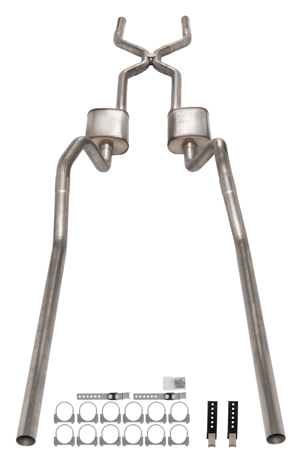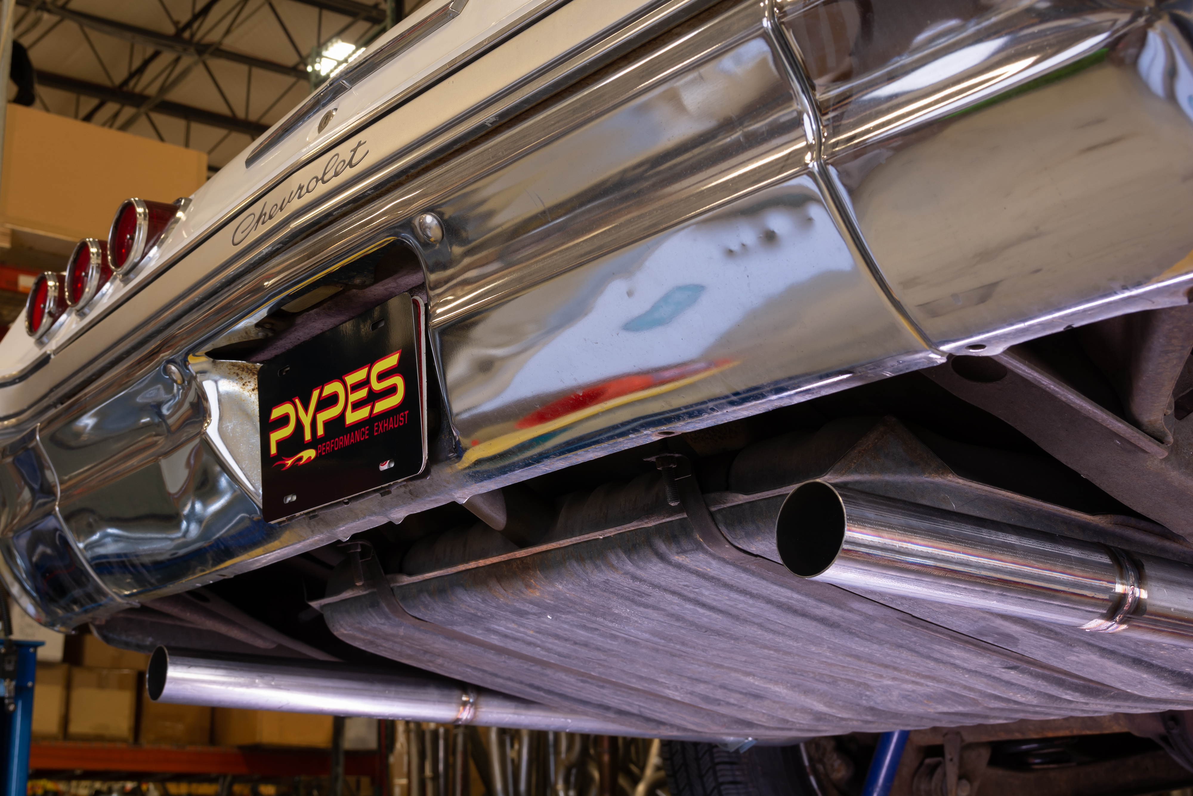 Upgrade your 1965-70 Chevy B-Body with the SGB45V Hpipe Crossmember Back Exhaust from Pypes. Engineered for enhanced performance, this system adds extra punch in the passing lane and improves gas mileage. Crafted with precision from high-quality materials, the smooth, 16-gauge, mandrel-bent, stainless steel pipe ensures optimal exhaust gas flow, significantly boosting horsepower.