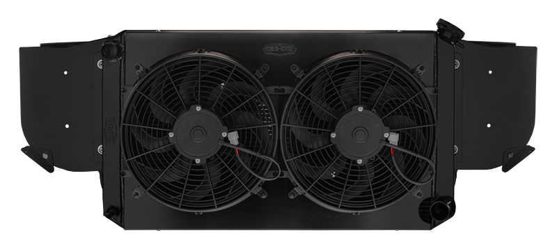 Each module comes fully assembled and ready to bolt into your vehicle. They consist of an aluminum radiator support, big 1.25 inch tube dual core cross flow radiator, two 1900cfm fans/shroud combination, billet cap and billet overflow tank.