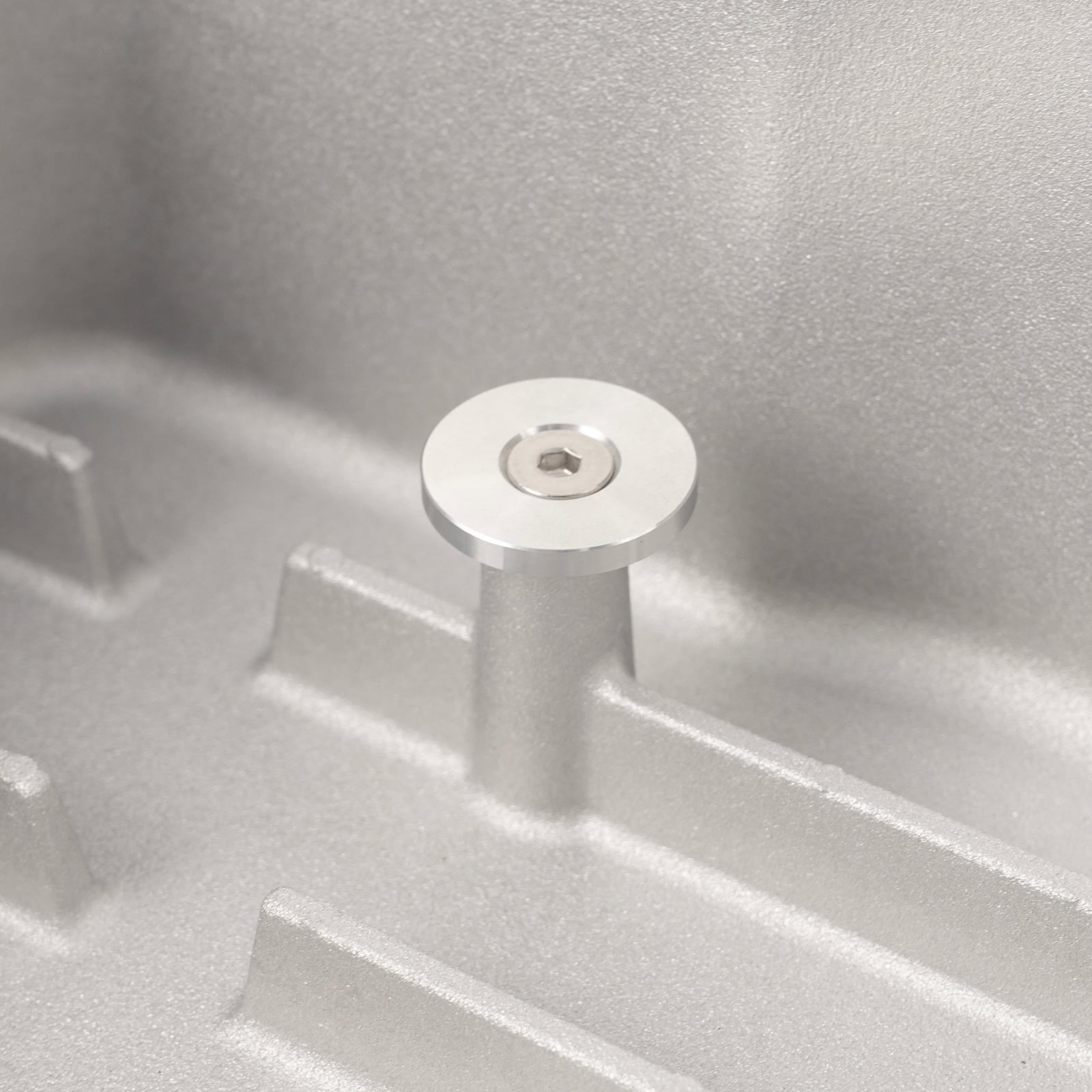 The PPE Pan's billet stainless steel drain plug is equipped with a powerful neodymium magnet that captures ferrous particles, providing additional protection for your transmission. Each pan includes a new deep transmission filter and a flat gasket.