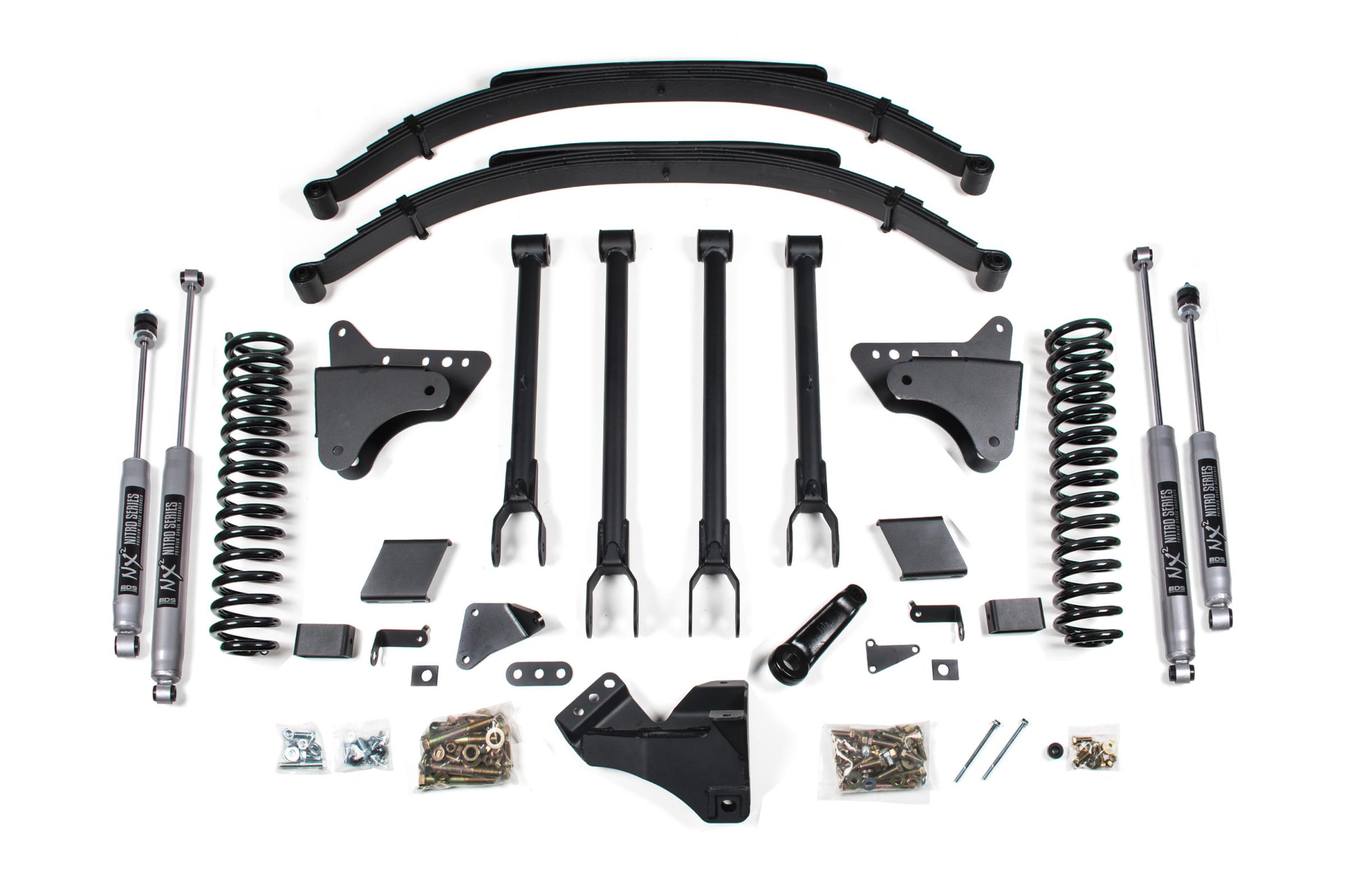 Go big with the BDS Suspension 8-inch lift kit and 4-link conversion for your 2011-2016 Ford Super Duty F250 and F350 diesel truck. Designed to improve stance, performance, and capability, this kit includes everything necessary to set your truck up right with clearance for up to 38 inch Tires.