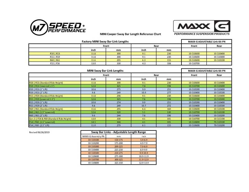 If you've changed the suspension geometry by lowering or raising your MINI then you definitely need a set of the MAXX-G Performance Suspension links to get your swaybar back into proper alignment and gain maximum bind free suspension travel and maximum grip!
