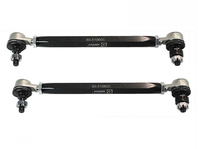 The MAXX-G adjustable swaybar endlinks manufactured by M7 Speed feature forged alloy steel sealed and permanently lubricated OEM style ball stud and socket ends for easy installation and a military grade aluminum adjuster sleeve with opposing 12mm diameter RH and LH threads to make length adjustments a simple task. Made in the USA!