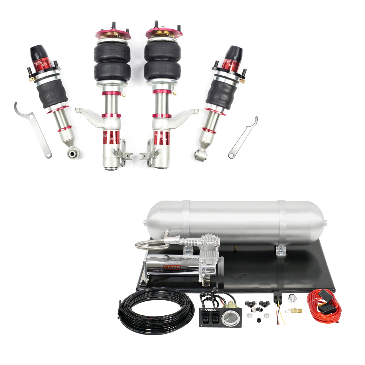 AirPlus Air Struts allow for entry into air suspension without breaking the bank. When raised AirPlus Air Struts allow for clearance for speed bumps, dips, driveways and road hazards and when deflated allow your vehicle to drop all the way to the ground.