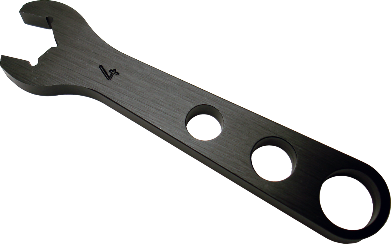 Billet aluminum AN open-end hex wrench. Precision fit. Will not damage those expensive AN fittings. Anodized finish is color coded to the AN size of the wrench. Sold individually.