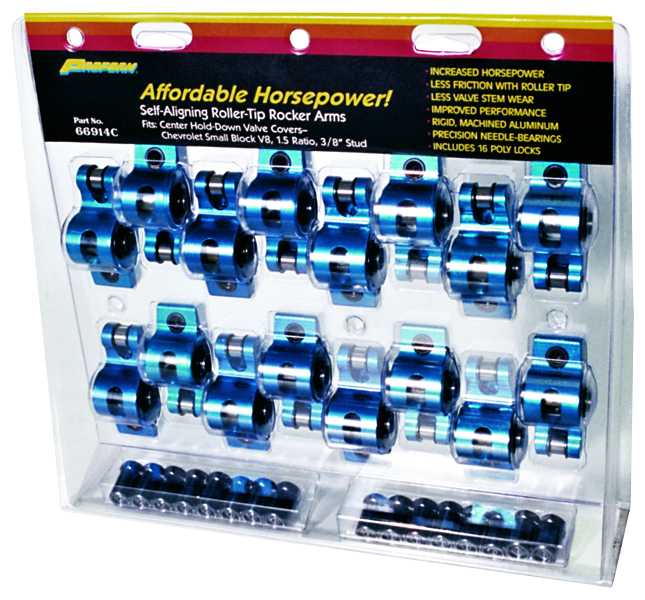 Rid your engine of internal friction with roller-tipped rocker arms. The race-proven full needle bearing, fulcrum and roller tip not only unleash horsepower, they also lengthen valve train component life and reduce wear and tear on valve stem tips. Precision machined to insure consistency and ratio accuracy. 16 extruded aluminum roller rockers and 16 poly locks. Sold as one set.