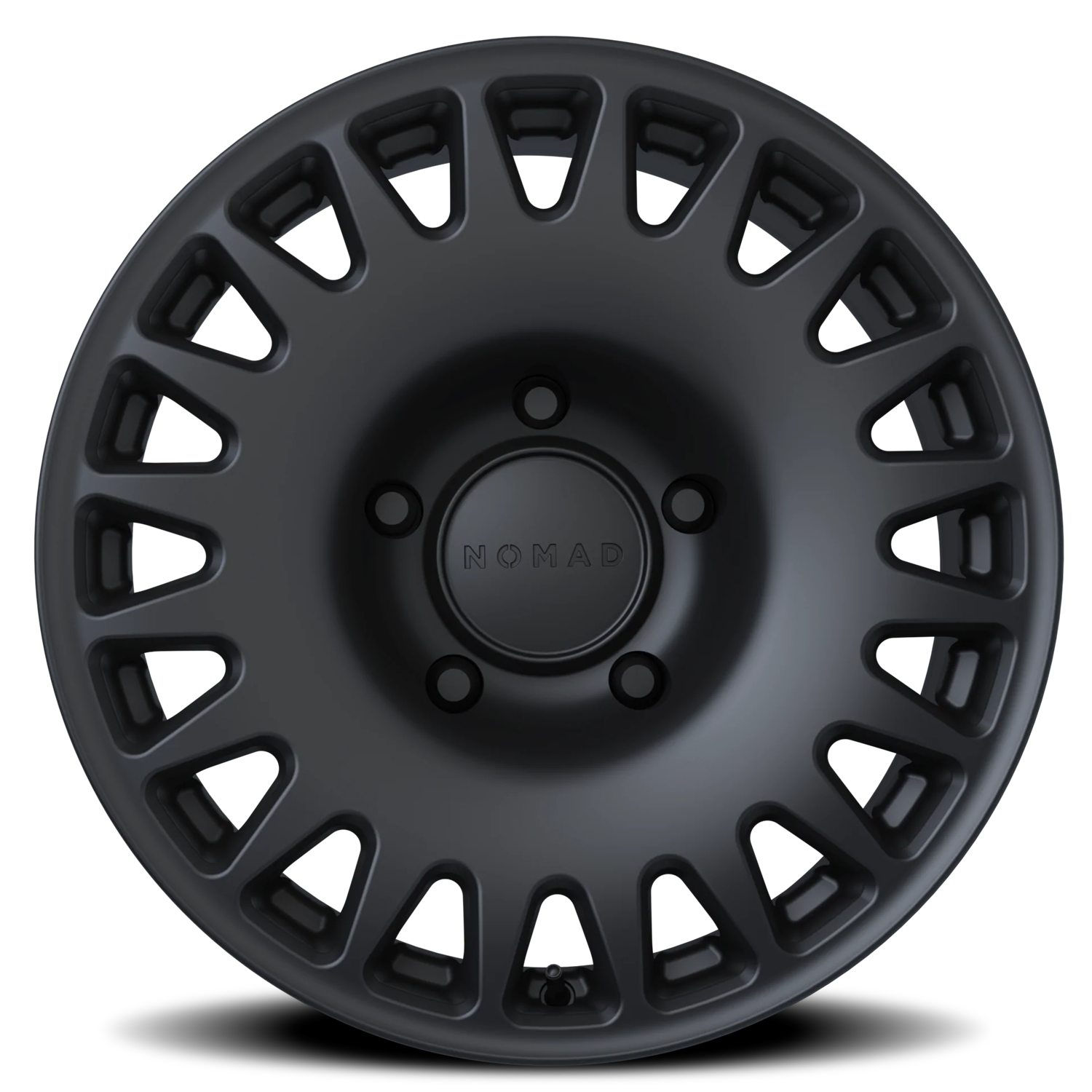 Color Matched Snap-On Cap: Each wheel features a color-matched snap-on cap adorned with a debossed Nomad logo, adding a touch of elegance and brand pride to your vehicle's exterior.