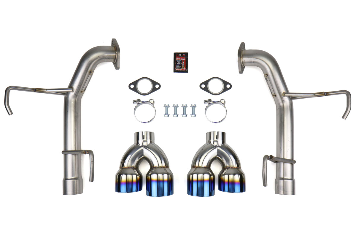 All components are meticulously TIG welded by hand to perfection for long and reliable service life. To finish it off, the systems use slip-on exhaust tips, allowing you to fine tune the position of the tips relation to the bumper.
