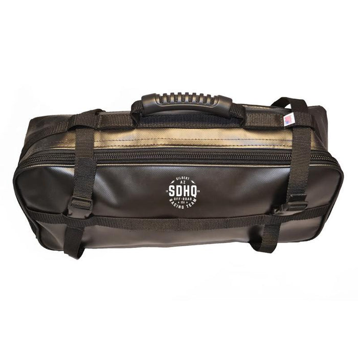 This low profile tool bag bolts to your vehicle with heavy duty 1 inch straps and easily unsnaps to carry it where ever it is needed. Made with an ultra strong, vinyl coated nylon and a trim color. Bolt the heavy duty 2 inch webbing straps to your vehicle and easily unsnap the bag to carry it where ever it is needed.