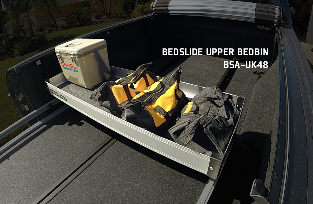 The BEDSLIDE upper BEDBIN adds an additional 16 x 48 bin that mounts above any BEDSLIDE with a GUARDRAIL or TRAXRAIL kit. The upper BEDBIN provides added storage space for smaller items while still providing full use of your BEDSLIDE deck space.