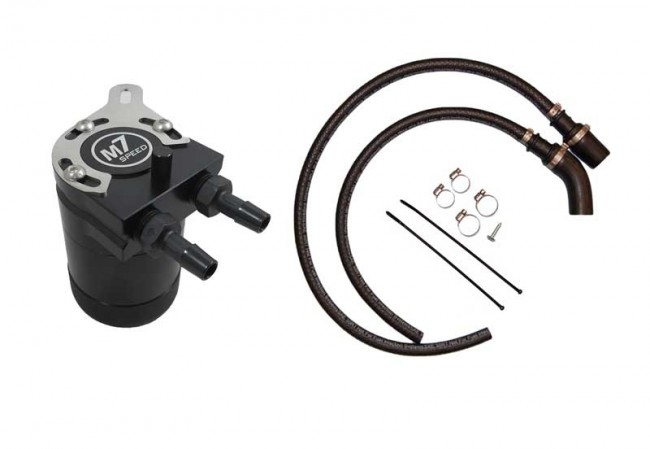The M7 Oil Catch Can is not only functional is a work of automotive performance ART! It is CNC machined from billet aluminum and adds a sharp look to your engine compartment.