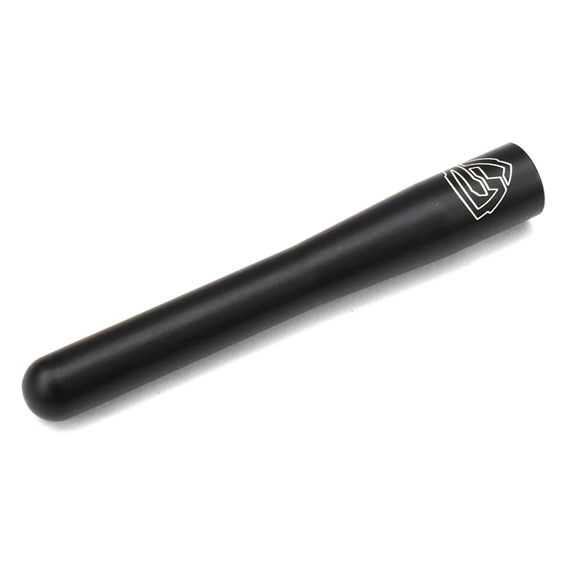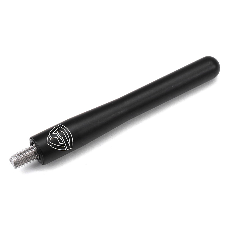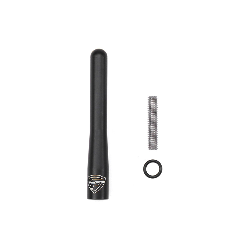 The body of the antenna is constructed from 6061-T6 billet aluminum that has been black anodized, finished with a laser engraved FactionFab F-Shield Logo. We include a stainless steel stud with a matching thread pitch for the OEM mount. The underside is also counter bored to accept an included o-ring to seal the threads against dirt and corrosion.