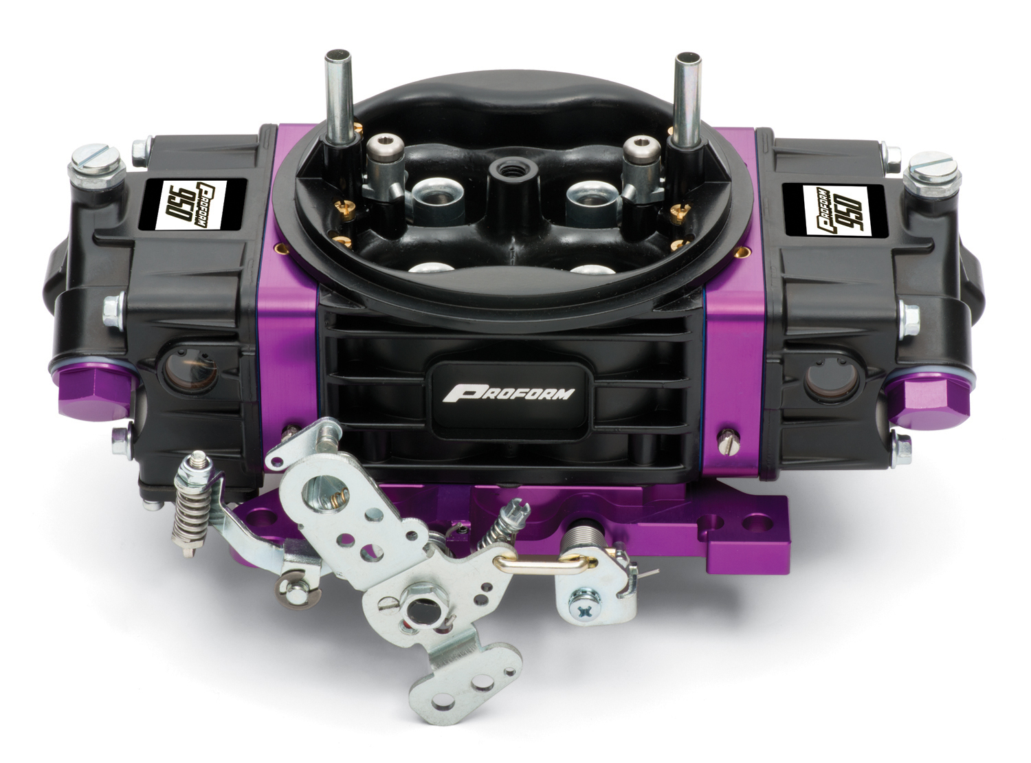 PROFORM Black Racing Series Carburetors with Black Diamond coating used on the main body and fuel bowls provides a durable finish which is impact resistant, and reduces fuel temperature based on thermal testing for enhanced performance. It is impervious to virtually all under hood chemicals and fuels, and is corrosion resistant. Each carburetor is hand assembled and tested in the U.S. utilizing the PROFORM High-Flow Carburetor Main Body, durable billet metering blocks, high performance billet throttle baseplate, and lightweight aluminum fuel bowls. PROFORM Black Race Series Carbs include Adjustable High-Flow Aluminum Main Body with Screw-In Air Bleeds, No Air Horn, Choke Tower, or Choke Control. Billet Throttle Base Plates have Adjustable Secondary Air Flow Cam Bracket, Solid Billet Construction, Timed and Full Vacuum Tubes for Tuning and Accessories, Button Torx Head Throttle Plate Screws, Power Valve Blow Out Protection, Progressive Slip Link Mechanical Secondary Linkage, Serviceable Throttle Levers, and Ford Kickdown. Billet Metering Blocks feature Solid Billet Construction, Durable, No Warping or Porosity Problems, and Changeable Idle Feed Restriction and are Manufactured in the U.S.A.! Aluminum Fuel Bowls feature Lightweight Aluminum Sight Glass Windows for easy float adjustment! Sold Individually.