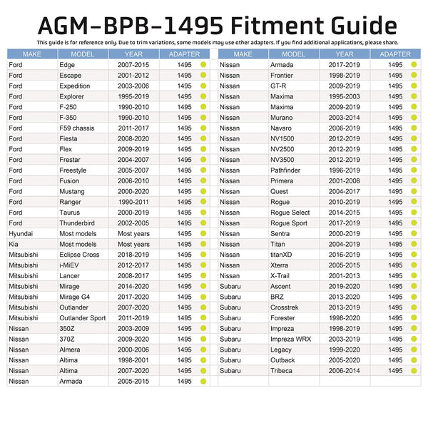 Note: Mazda, Mitsubishi, Subaru and Volvo have used different caps across their brands. Please check the Fitment Guide image ordering.